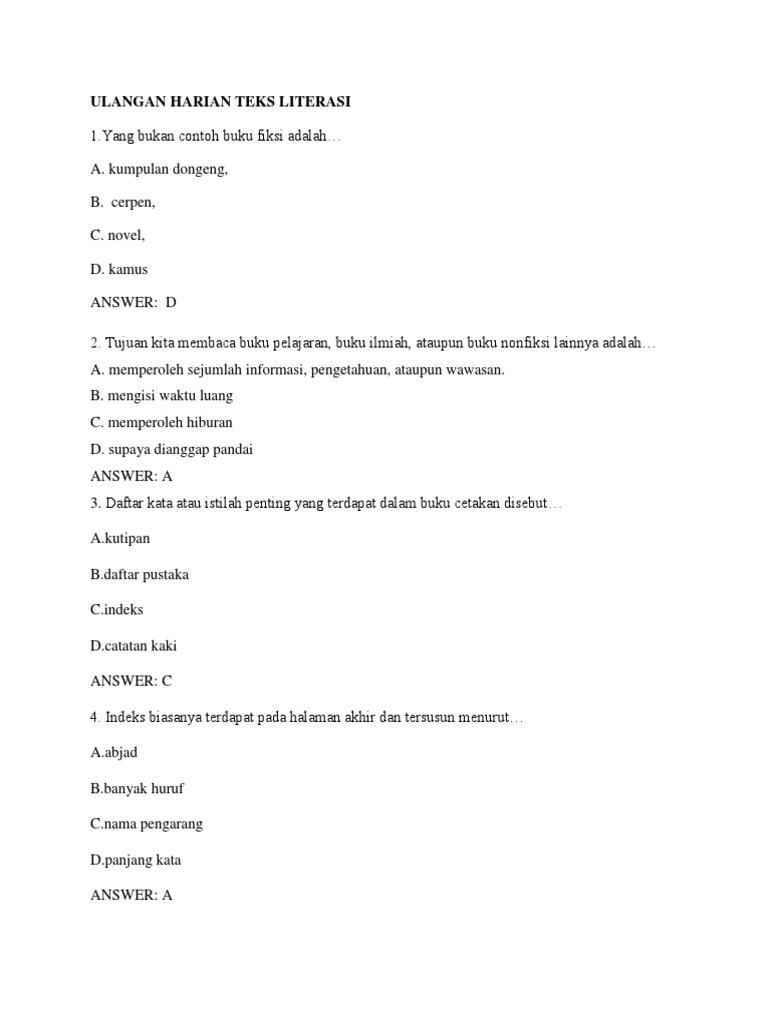 Soal Penilaian Harian Bahasa Indonesia Kelas 7 Semester Ganjil Materi Buku Fiksi Dan Non Fiksi Didno76 Com from 1.bp.blogspot.com Contoh sebuah indeks dari buku nonfiksi adalah perpustakaan 12; Bagaimana kata resensi digunakan dalam buku non fiksi? Indeks buku adalah istilah atau kata penting yang tersusun berdasarkan abjad. Apakah indeks nama merupakan bagian dari indeks buku? Aug 09, 2021 · indeks buku pada umumnya terdiri dari beberapa bagian, diantaranya yaitu indeks nama, indeks topik, perincian indeks topik, dan juga nomor halaman dimana nama atau rincian topik tersebut berada. 25 menunjukkan halaman istilah topik (perpustakaan) tersebut berada. Indeks adalah kata atau istilah penting yang tersusun berdasarkan abjad yang memberikan informasi mengenai halaman tempat kata atau istilah ditemukan. Perpustakaan merupakan istilah yang terkandung dalam buku sedangkan 12;
