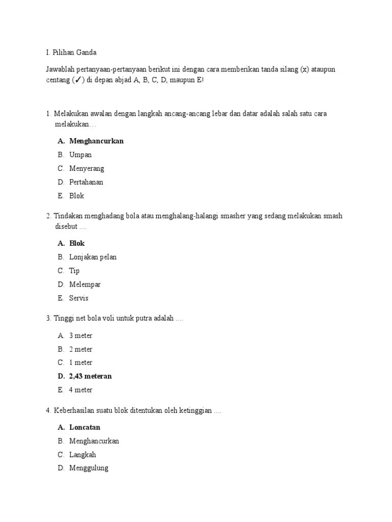 3.1.2 permainan bola besar menggunakan permainan bola voli. Servis dalam permainan bola voli hanya dapat dilakukan pada. Melakukan awalan dengan ancang ancang yang lebar dan datar merupakan cara untuk melakukan…. Pembahasan · mengambil langkah awalan sekitar 1 sampai 3 langkah · langlah yang diambil merupakan langkah kaki yang lebar · ketika mendekati net, . Bola dalam keadaan melayang merupakan salah satu cara melakukan. Tinggi bersih net bola voli untuk pria … Posisi spiker/smasher dalam permainan bola voli berada pada posisi. Melakukan awalan dengan ancang ancang yang lebar dan datar merupakan cara untu melakukan.